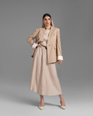 این کت را میتوانید با شلوار لینن ست کنید یا روی یک لباس ساده تابستانی بپوشید تا ظاهری نیمهرسمی و شیک داشته باشید. مناسب برای محل کار، قرارهای دوستانه یا حتی سفرهای تابستانی.